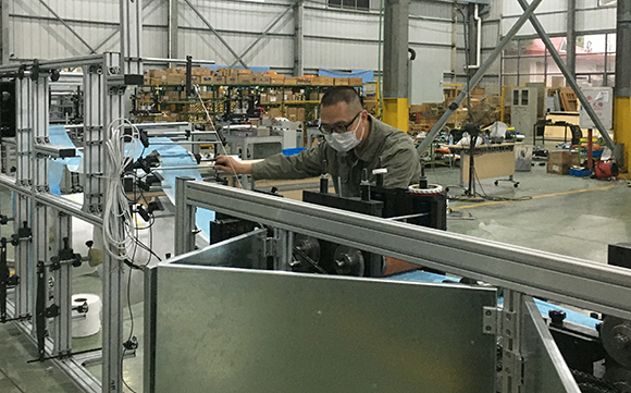 2020年2月7日以來,新型冠狀病毒感染肺炎疫情防控進入關鍵階段,公司積極響應漳州市委、市政府千方百計提升防護物資產(chǎn)能的號召,聯(lián)手福建明鑫智能科技股份有限公司聯(lián)合研發(fā)日產(chǎn)10萬個醫(yī)用口罩生產(chǎn)線。在研制團隊的努力下,2月17日即完成生產(chǎn)線組裝,2月27日完成8條生產(chǎn)線調(diào)試,有效解決醫(yī)用口罩生產(chǎn)線“一機難求”的難題。