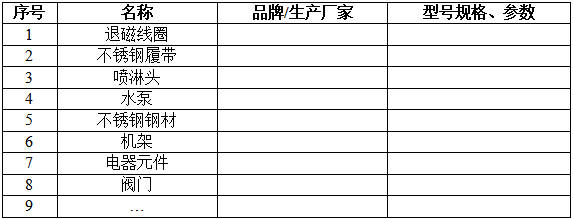 *設(shè)備退磁部分為線圈式退磁;采用不銹鋼網(wǎng)帶式傳輸鏈條,并配有噴淋裝置配合網(wǎng)帶的傳輸對(duì)零件進(jìn)行噴淋清洗。設(shè)備總功率:≤30KW。