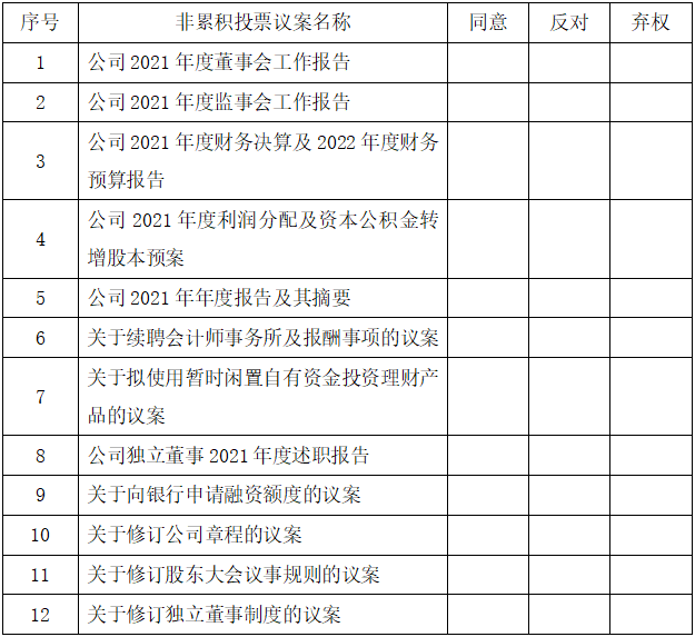 茲委托 先生(女士)代表本單位(或本人)出席2022年5月20日召開的貴公司2021年年度股東大會,并代為行使表決權。