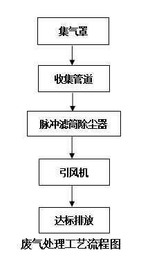 該項目砂帶機廢氣風(fēng)量小,主要為細小顆粒粉塵,選用脈沖濾筒除塵器處理粉塵,初步流程見下圖。