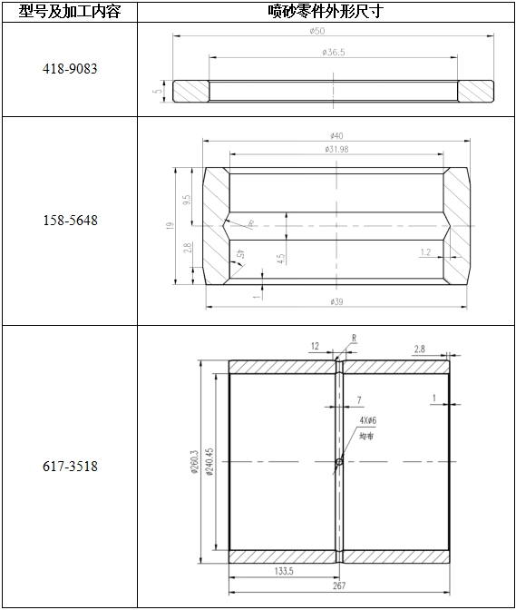 設(shè)備加工對(duì)象為我司軸套產(chǎn)品。相關(guān)型號(hào)如下: