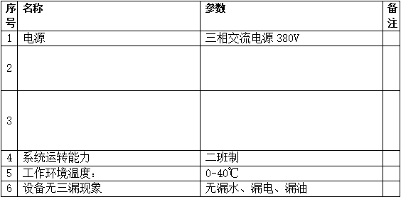 4、設(shè)備服務(wù)要求:供方在按上述供貨范圍提供設(shè)備的同時(shí),須提供與之相應(yīng)的伴隨服務(wù)。包括:技術(shù)資料、安裝調(diào)試、現(xiàn)場(chǎng)試運(yùn)行、技術(shù)支持、技術(shù)服務(wù)、技術(shù)培訓(xùn)等,以及在文中未提及的、隱含的其他必須由供方提供的相關(guān)服務(wù)。