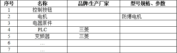 6、相關(guān)技術(shù)參數(shù)表,如包括但不限于變頻器、伺服驅(qū)動(dòng)器。