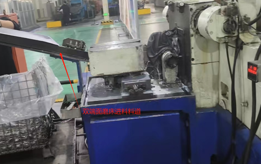 (來料)料籃整框上料→雙端面磨床進(jìn)料槽→磨削→雙端面磨床出料槽→計(jì)數(shù)→分料 →進(jìn)出料箱