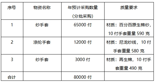 (三)項目內(nèi)容:福建龍溪軸承(集團)股份有限公司計劃采購紗手套、滌綸手套年約80000付。