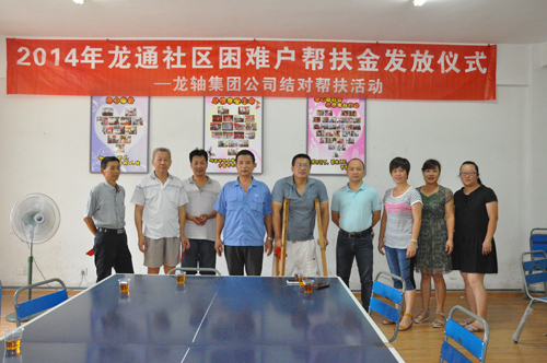 2014年8月8日,公司與薌城區(qū)南坑街道龍通居委會聯(lián)合舉行了“2014年幫扶特困戶幫扶金發(fā)放儀式”。 公司黨委副書記張?zhí)┥跁显俅蜗?012年結(jié)對幫扶的5戶龍通社區(qū)困難戶各發(fā)放了3000元的幫扶金,并和他們進行了親切座談。面對受助人員溢于言表的感謝之辭,張?zhí)┥硎荆骸白鳛楦=ㄊ∥拿鲉挝唬瑤ь^開展社會公益事業(yè)是義不容辭的責(zé)任。希望你們的生活能有所改善,同時,也希望通過這樣的行動,積極傳播扶危濟困的中華民族傳統(tǒng)美德,讓更多需要幫助的人得到社會關(guān)懷!”