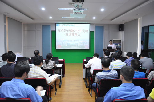 2014年4月27日-5月4日,公司共分五場在二樓會議室(四樓會議室)進行部分管理崗位公開競聘演講答辯。此次競聘包括了車間主任、車間副主任、車間調度、設備動力部部長、質量管理部部長、國內市場部副部長(主持)、科技管理部部長(或主持)、科技管理部副部長、安全與環(huán)境管理部部長(或主持)、黨支部副書記(兼副主任)、團委副書記等11個崗位,共有67名競聘者參加了競聘演講答辯,是公司歷年來競聘崗位數(shù)量、參加競聘人數(shù)最多的一次。