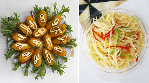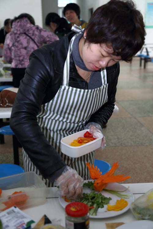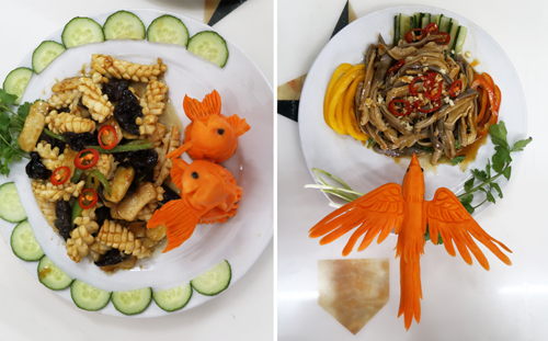 參賽隊(duì)員們自帶食材,各顯其能,動(dòng)作嫻熟,有條不紊,盡顯烹飪能手的風(fēng)采。十八支參賽隊(duì)共烹飪出了18道熱菜和18道冷菜的美味佳肴,他們還為每個(gè)菜品起了生動(dòng)的名字,寓意不同,“荷荷美美”寓意家庭和美幸福;“魚(yú)躍龍門(mén)”彰顯著對(duì)職工、對(duì)企業(yè)的美好祝愿;“多彩人生”承載著每個(gè)職工對(duì)工作生活期盼。不僅創(chuàng)意新穎,而且色澤鮮美,味道純正,女工們用自己精心烹飪的美味佳肴互傳友誼,倡導(dǎo)和諧健康生活。