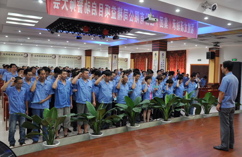 會(huì)上,陳晉輝常務(wù)副總首先宣布了《關(guān)于啟動(dòng)精益項(xiàng)目管理的通知》,對項(xiàng)目范圍、目標(biāo)、組織架構(gòu)、項(xiàng)目小組人員和參與精益推進(jìn)的相關(guān)各部門人員的職責(zé)做出明確規(guī)定,確保公司精益項(xiàng)目實(shí)施工作能夠按《精益項(xiàng)目計(jì)劃書(一期)》計(jì)劃內(nèi)容順利進(jìn)行,在2014上半年實(shí)現(xiàn)系統(tǒng)提績達(dá)標(biāo)。企管部施毅群部長隨即就精益項(xiàng)目主體實(shí)施計(jì)劃與推進(jìn)管理考核制度要點(diǎn)做了簡要講解。車間主管張高德、班組長張步斌分別代表公司中層主管和班組長發(fā)言,并帶領(lǐng)大家向公司董事長曾凡沛進(jìn)行莊嚴(yán)的集體宣誓。協(xié)力中興董事長邱模榮也代表咨詢公司在會(huì)上發(fā)表了服務(wù)承諾。會(huì)議過程緊湊、氣氛莊嚴(yán)而又熱烈。